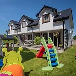 Deze 6-kamer Domki Jelonek - Ogrzewane, Klimatyzowane, Balia-Jacuzzi Władysławowo villa bevindt zich op 25 minuten wandelen van het Domek Do Góry Nogami en nodigt gasten uit om attracties in de omgeving te verkennen.